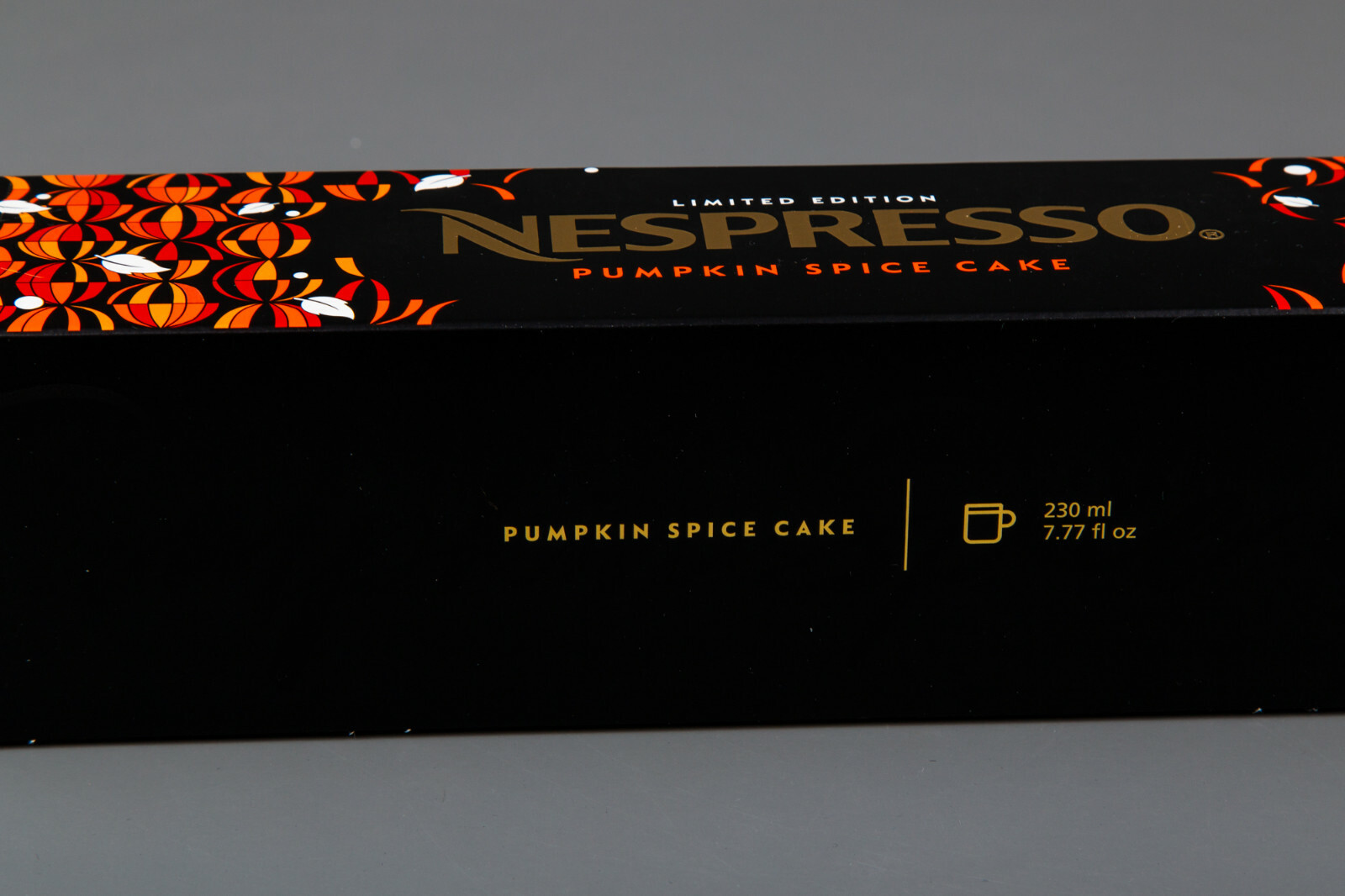 Préparez une capsule Pumpkin Spice Cake 230 ml dans la tasse. Why we love it. Nespresso Pumpkin Spice Cake is a smooth blend of medium roasted Ethiopian Central and South American Arabica beans.